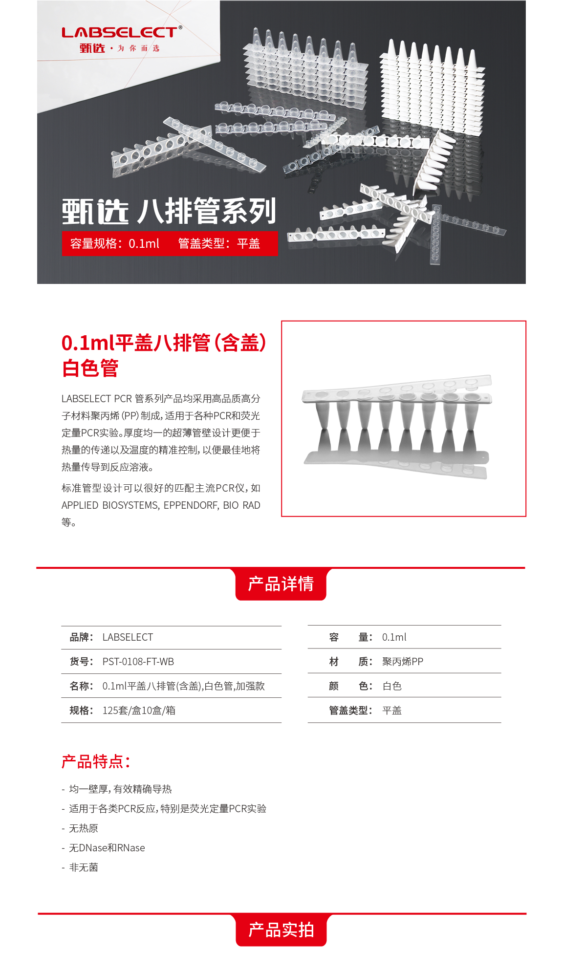 0.1ml平盖八排管(含盖),白色管