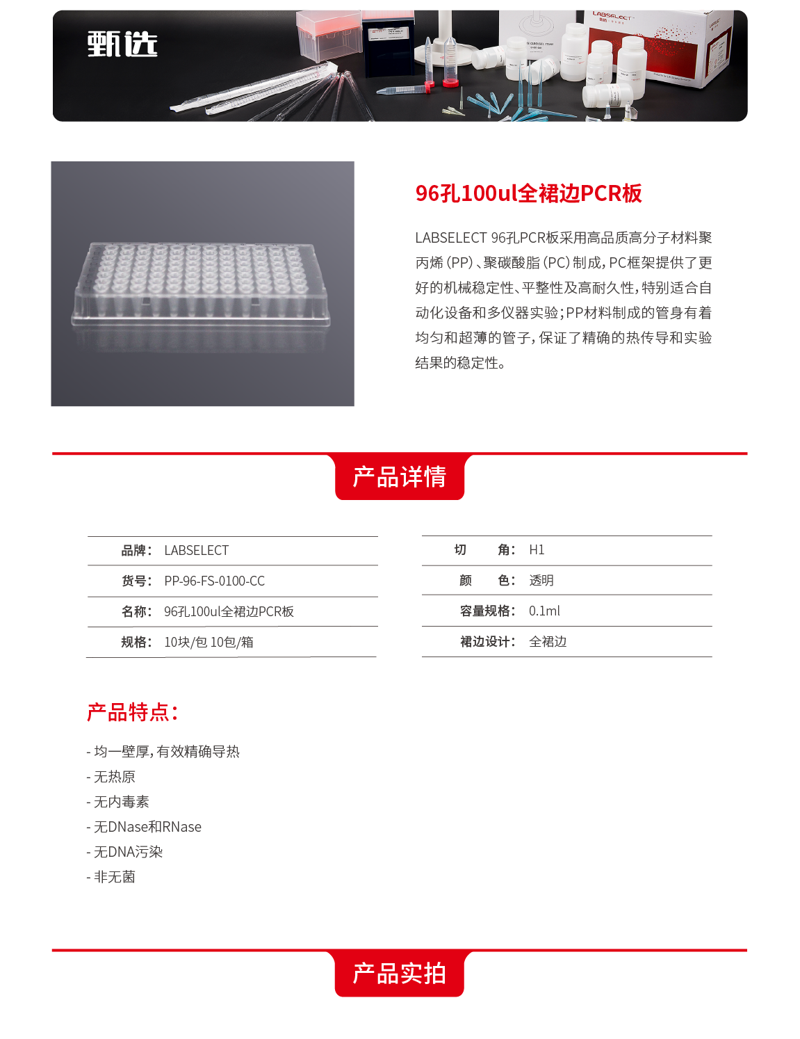 全裙边PCR板,H1切角,透明框,透明管
